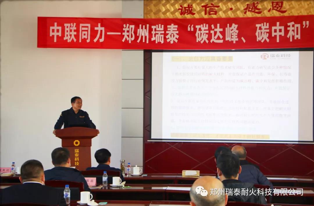 鄭州瑞泰黨委書記、董事長李泉侑致歡迎詞,他首先對中聯(lián)同力材料各位領(lǐng)導(dǎo)的到來表示熱烈歡迎,并向多年來中聯(lián)同力材料對鄭州瑞泰公司的支持與幫助表示感謝!隨后李泉侑董事長向與會領(lǐng)導(dǎo)簡要介紹了鄭州瑞泰發(fā)展歷程,并預(yù)祝會議圓滿成功。