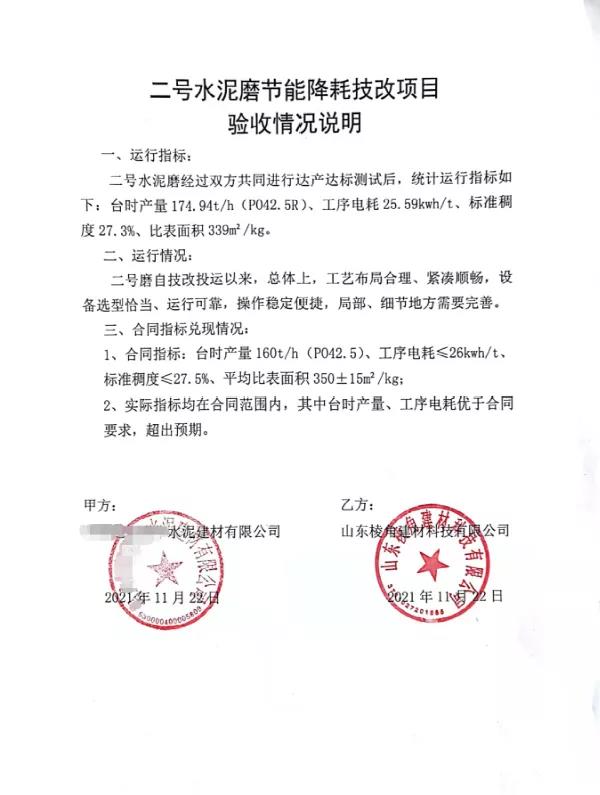 結束語:山東棱角近三年來承接了山東某公司100萬噸/年水泥粉磨站EPC工程、云南某公司2#水泥磨系統節能降耗技改EPC工程,在項目初設、設備選型、圖紙設計、土建施工、設備安裝、非標制安、生產調試等,把控項目的各個階段,安全施工、嚴把質量、緊扣工期節點,均超額完成項目預期指標,向業主遞交了滿意答卷,展現了山東棱角建材科技有限公司從設計、建設到調試“一條龍”綜合服務的優異能力。