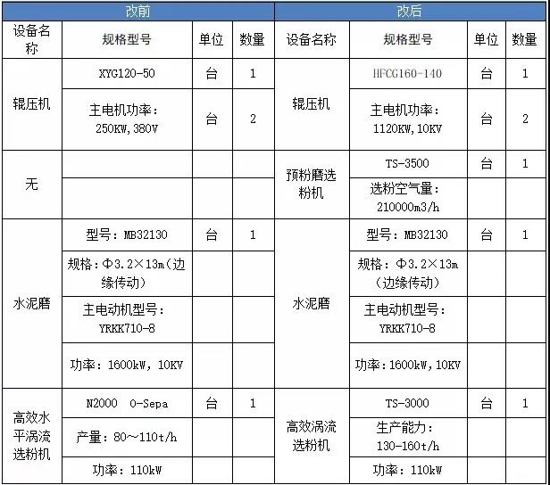 該項目技改前,輥壓機系統配置120/50輥壓機、Y280S-6打散分級機,磨機Φ3.2米*13米(邊緣傳動),配置N2000 O-Sepa選粉機、高濃度收塵器組成輥壓機聯合粉磨系統;受系統配置制約,磨機平均臺時(PO42.5)85t/h,系統能耗偏高。技改后,利用原有水泥磨,在現有磨房西北側新建輥壓機系統框架,并新建二層電力室,以滿足技改后設備供電需求;選用160/140輥壓機+高效動態選粉機組成輥壓機閉路系統,選用磨機(利舊)+高效渦流組合選粉機組成水泥磨閉路系統;改后2#水泥磨系統形成雙閉路輥壓機半終粉磨工藝,并生產出合格水泥,實現了業主方利用短暫市場淡季完成技改工程對接投產的計劃,有力的保證了業主方生產經營不受影響。