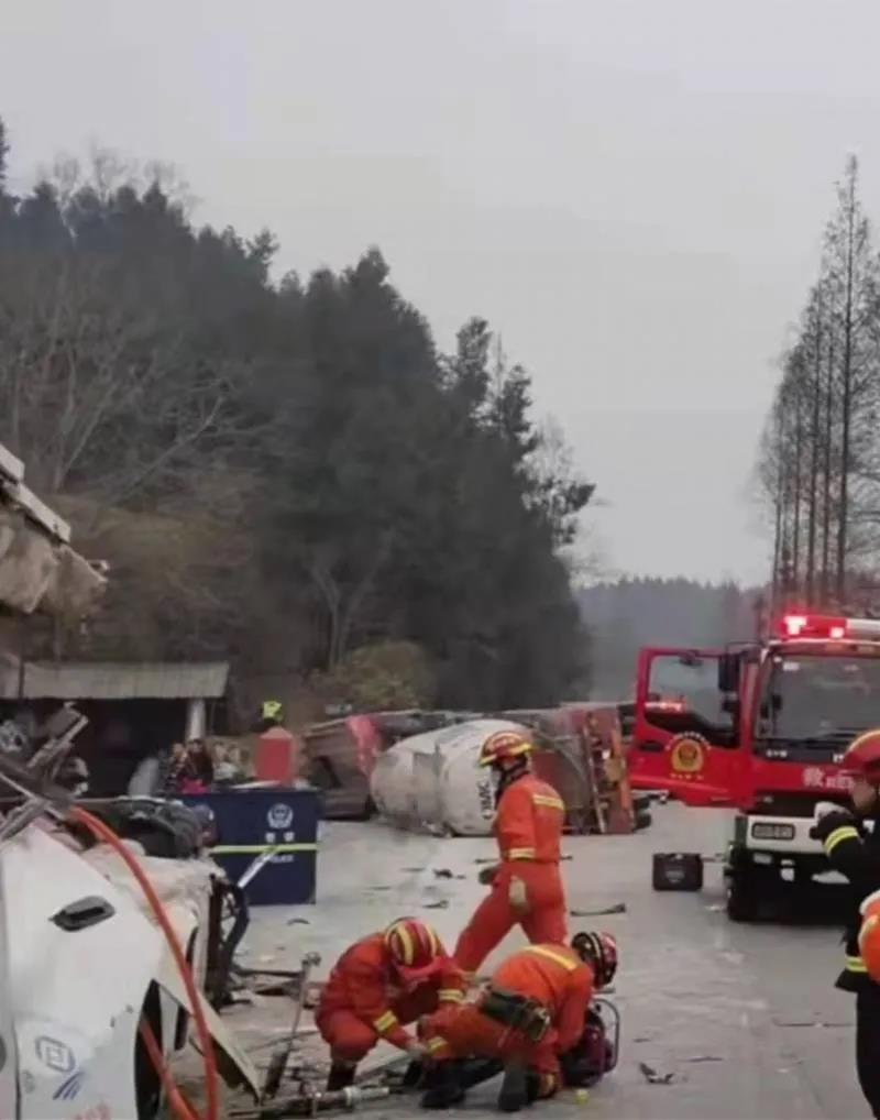 據此前報道,罐車司機徐某威(男,漢族,36歲,四川省廣漢市人)駕駛一輛車牌為川F80XXX的重型半掛牽引罐車(滿載粉煤灰)從江油市雙河鎮往江油市區方向行駛過程中,與相向行駛的徐某明(男,漢族,47歲,四川省江油市人)駕駛的川B55XXX客車(準載30人、實載21人)發生碰撞,失控后又與面包車川B309XX、小汽車川B301XX發生刮擦(小汽車無人受傷)。事故造成7人當場死亡、1人送醫搶救無效死亡,4輛車不同程度受損。
