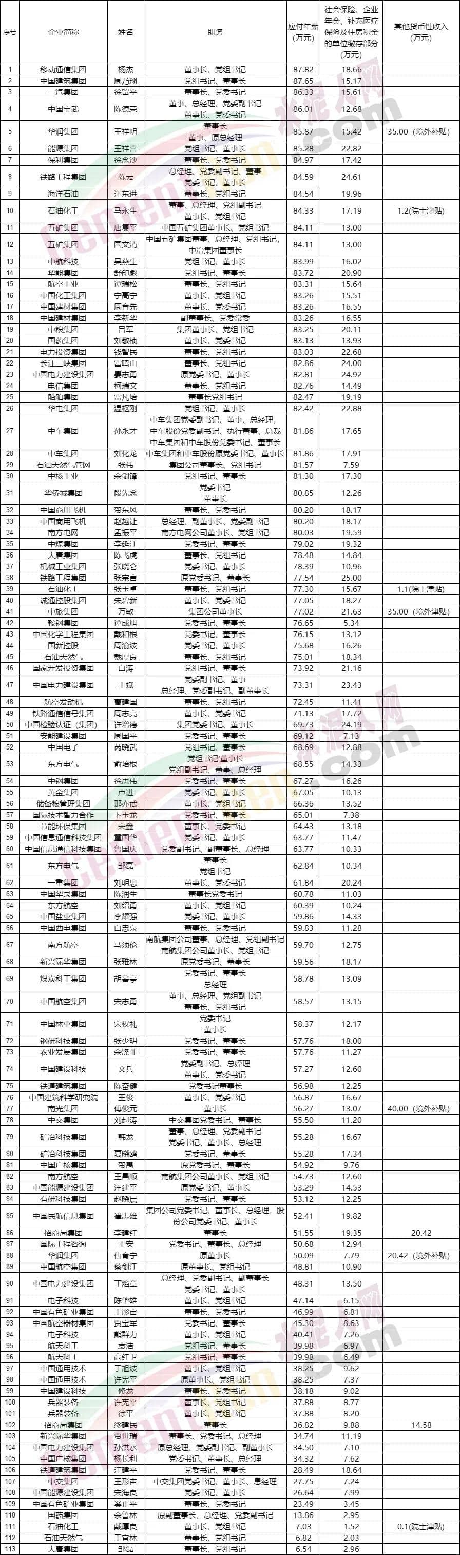 據(jù)水泥人網(wǎng)不完全統(tǒng)計國資委本次公布的860位負責人應付薪酬平均值為57.98萬,社會保險、企業(yè)年金、補充醫(yī)療保險及住房積金的單位繳存部分平均值為17.60萬元。其中享受國務院津貼、院士津貼、境外津貼等其他貨幣性收入的企業(yè)負責人39位。