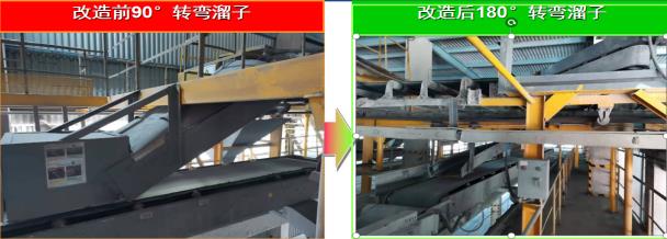 圖3轉(zhuǎn)彎溜子改造前后對比圖