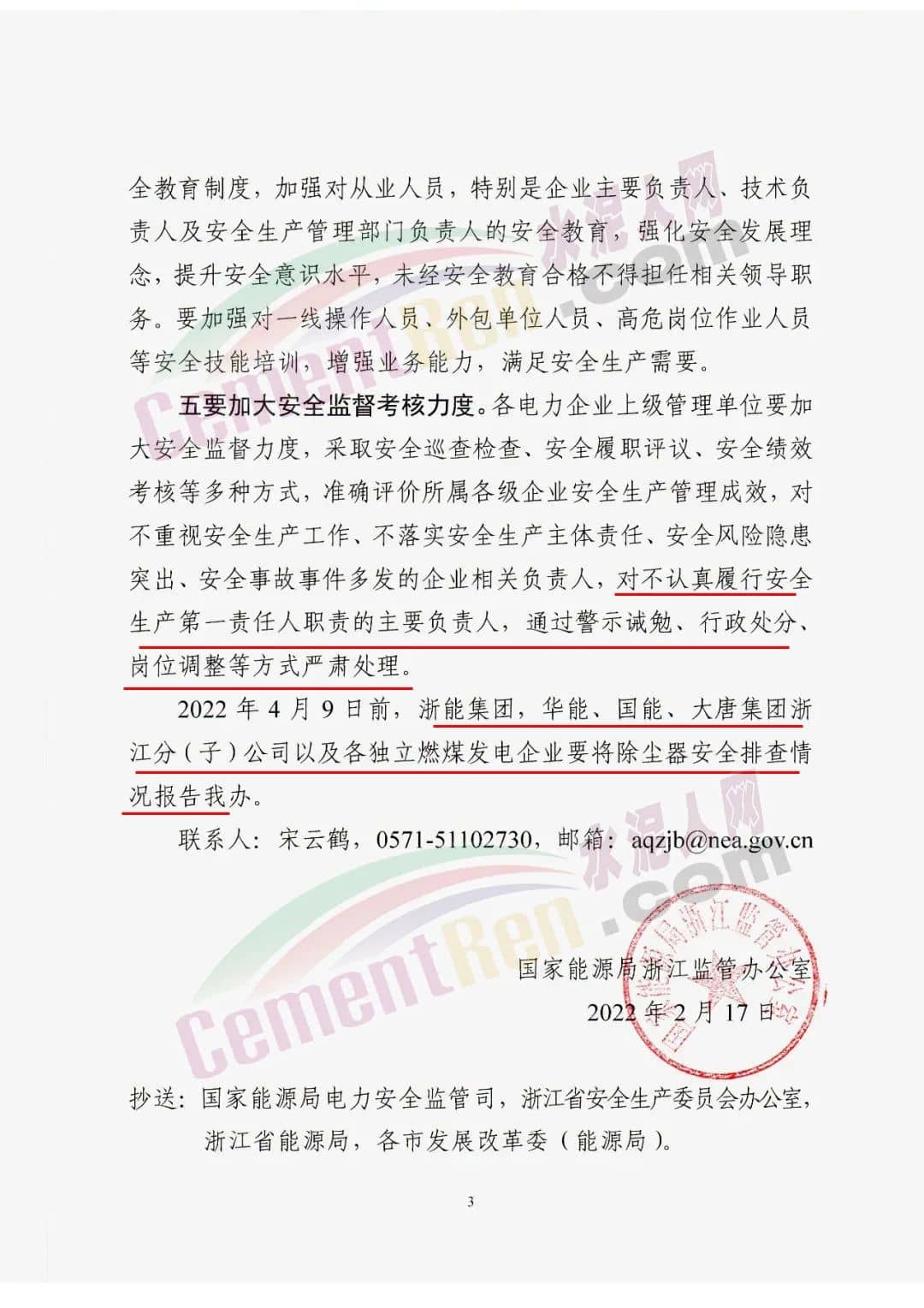 2022年4月9日前,浙能集團,華能、國能、大唐集團浙江分(子)公司以及各獨立燃煤發(fā)電企業(yè)要將除塵器安全排查情況報告。