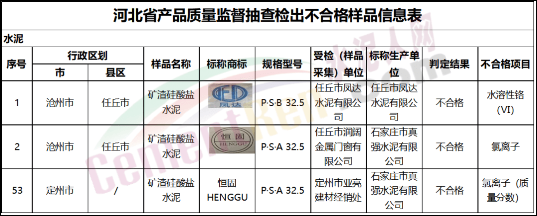 日前,河北省市場監管局發布《關于二月份產品質量監督抽查結果的通告》稱,為進一步加強河北省產品質量安全監管,切實維護消費者合法權益,河北省市場監管局采取購買樣品方式,抽查檢測電線電纜、建筑用鋼筋、水泥、化肥等產品,檢出不合格樣品83批次,其中,抽查水泥產品檢出不合格樣品3批次。具體《通告》如下: