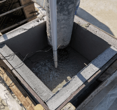 本次CF120超高強泵送混凝土和易性良好,出機坍落擴展度700mm,倒置坍落度筒排空時間為5.8秒,各項指標均達到預期設計效果,能滿足超高層和長距離泵送的要求。在廠區內,采用泵送方式澆筑成型7個立方體試模(邊長0.5m),技術人員全程采集了該混凝土的生產工藝參數、泵送壓力、澆筑速率和溫度監測等數據,為公司CF120超高強混凝土的生產澆筑積累了寶貴經驗。