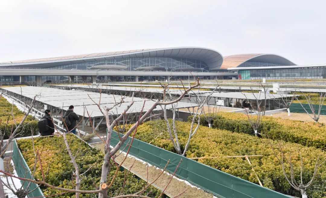 ?▲2022年2月18日,大興機(jī)場(chǎng)停車樓屋頂被光伏發(fā)電組件和綠植所覆蓋,預(yù)計(jì)可實(shí)現(xiàn)每年碳減排量2500噸左右。新京報(bào)記者 李木易 攝