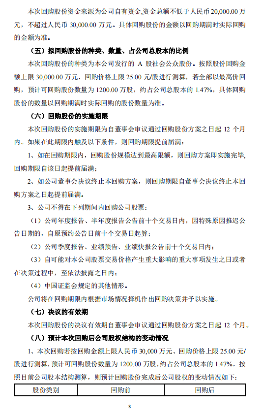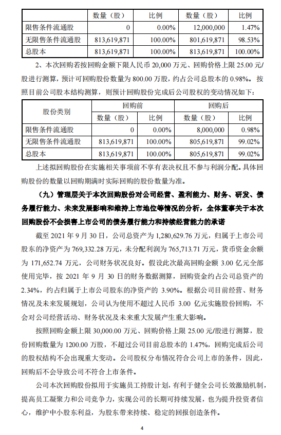 公司公告本次回購的股份將用于實施員工持股計劃或股權激勵,長效激勵約束機制的實施也將進一步提高團隊凝聚力和競爭力,助力公司長遠發展。