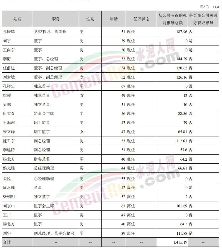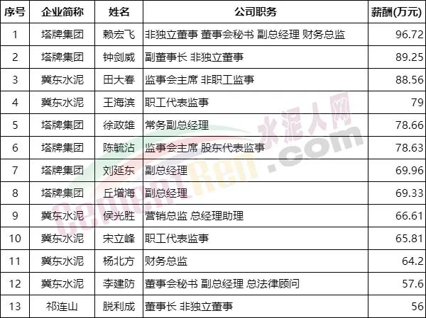 日前,水泥行業冀東水泥、祁連山、塔牌集團上市公司陸續發布2021年年度公告,公告中針對高管薪酬及員工工資均有提及。