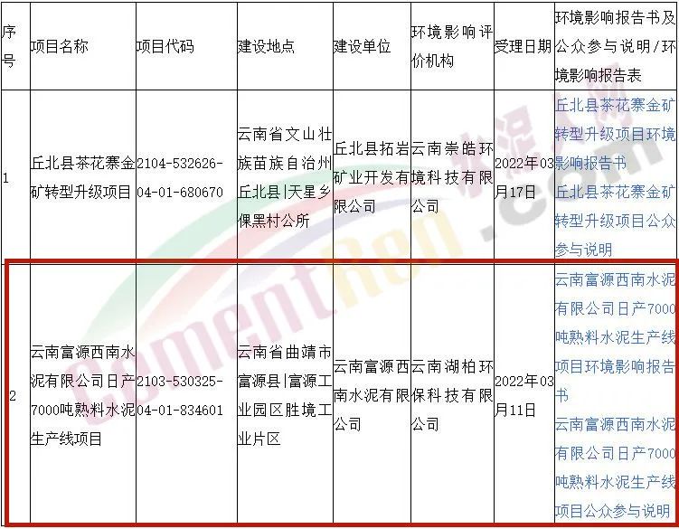 同日,云南省生態環境廳發布《關于2022年03月17日建設項目環境影響評價文件受理情況的公示》稱,