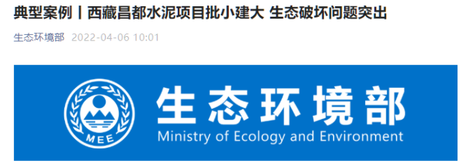 2022年3月,中央第四生態環境保護督察組督察西藏自治區發現,昌都市水泥項目批小建大,生態破壞問題突出。
