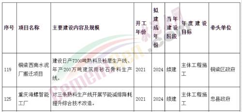 日前,為深入貫徹中央經濟工作會議精神,全面落實市委經濟工作會議要求和市政府工作報告安排部署,持續深化“抓項目穩投資”專項行動,重慶市人民政府辦公廳印發了《關于做好2022年市級重大項目實施有關工作的通知》,加快推進2022年市級重大項目實施,其中包括銅梁西南水泥廠搬遷建設日產7300噸熟料及粉磨生產線、年產200萬噸建筑用砂石骨料生產線以及重慶海螺智能工廠對三條熟料生產線開展節能減排降耗提升綜合技術改造兩大項目。