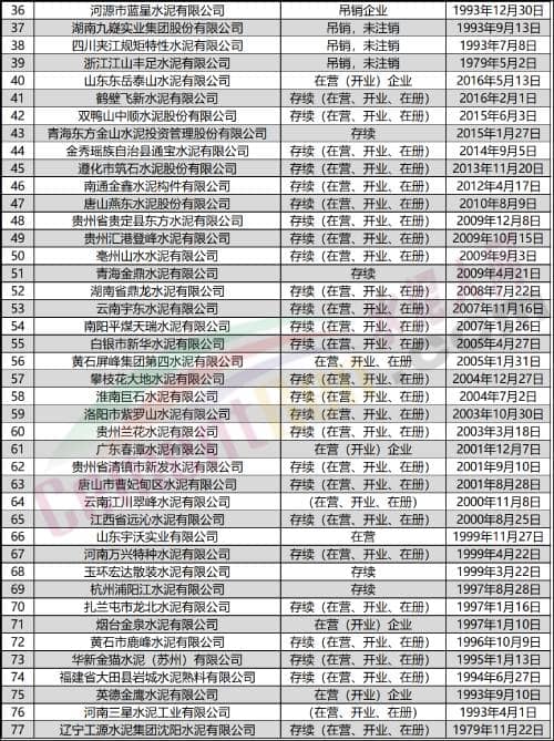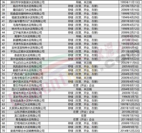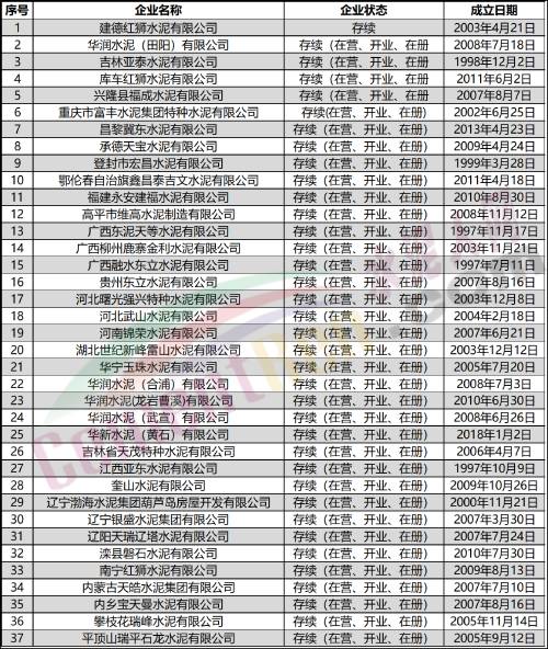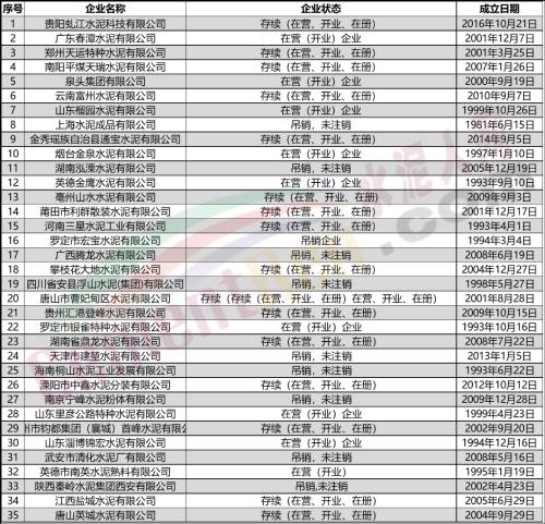 據水泥人網不完全統計,涉及行政處罰的99家水泥企業狀態均為存續、在營、開業、在冊企業,其中不乏海螺、冀東、華潤、紅獅、山水等水泥集團旗下企業。
