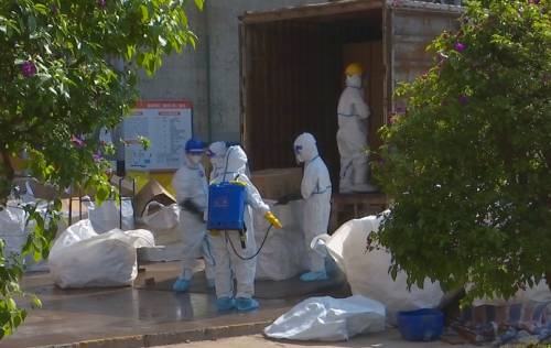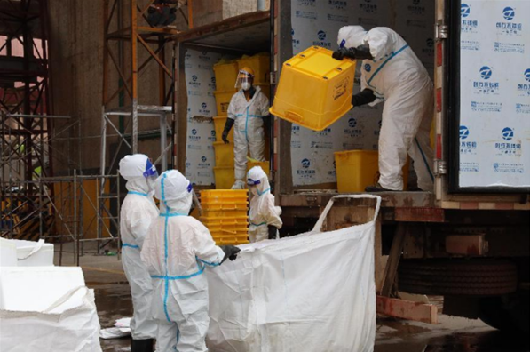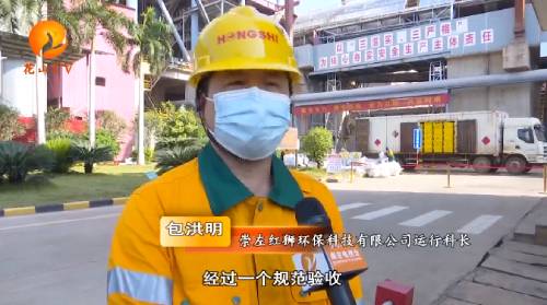 崇左紅獅環保技術有限公司運行科長包洪明:從醫院轉運過來密閉包裝,再轉到我們公司,經過一個規范驗收,再轉入作業現場?,F場再進行一些消殺,包括作業環境經過消殺之后再進行卸車,水泥窯高溫焚燒、分解,達到一個無害化的處理。