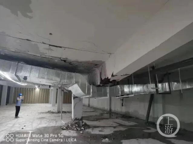 據業主提供的視頻顯示,4月13日上午,多名業主就此事前往售樓部詢問情況。“立柱和橫梁斷裂后開發商沒有上報,只是找了工人來修。4月12日晚現場視頻流出后,有業主連夜就趕到了售樓部。今天上午開發商的工作人員解釋說是上面土堆得太多,已經嚴重超負荷,導致塌陷。但對于業主提出的能否保證入住安全和后期處理情況,開發商沒明確回應。”業主李先生介紹。