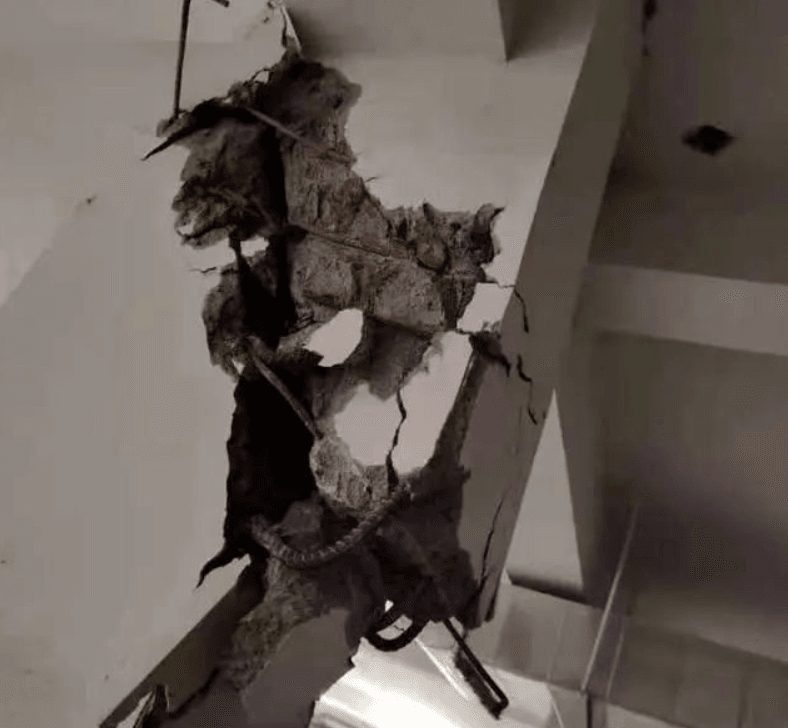 ▲除了立柱,地下室的橫梁也出現了嚴重的斷裂。圖片來源/受訪者供圖