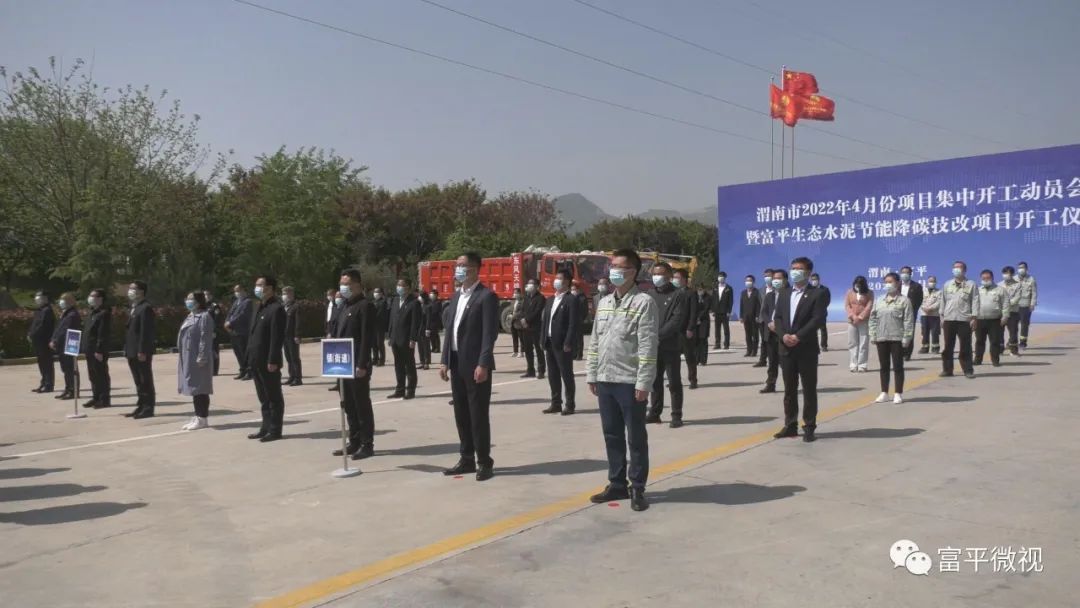 富平縣委副書記、縣長景軍榮主持并向渭南市主會場報告富平縣2022年4月份新開工項目情況,縣委副書記、政法委書記亢鵬,縣委常委、縣委辦主任黎忠利參加,副縣長段冰介紹富平生態水泥節能降碳技改項目情況,陜西富平生態水泥有限公司董事長作龐龍表態發言。