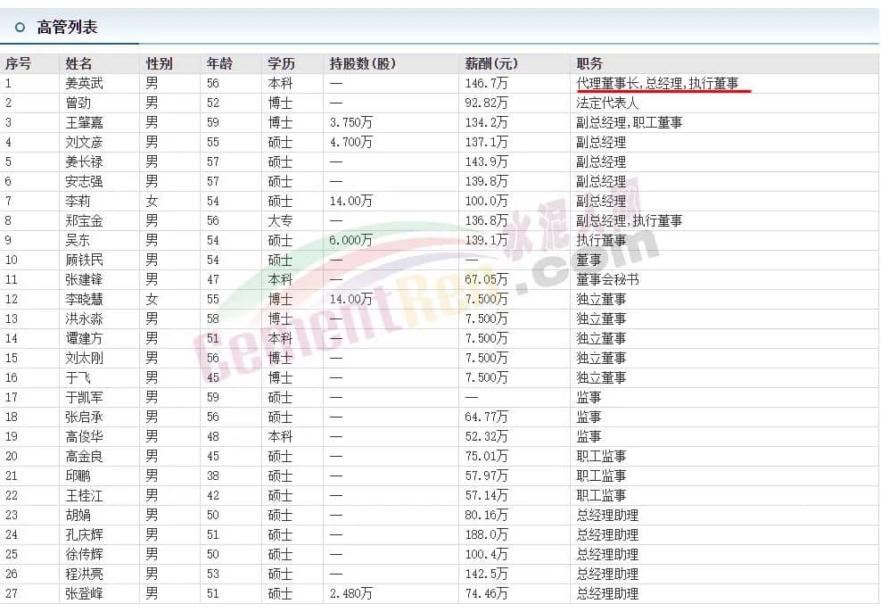上市公司數(shù)據(jù)庫高管列表顯示,姜英武,男,56歲,本科學(xué)歷,年薪146.7萬職務(wù)為代理董事長、總經(jīng)理、執(zhí)行董事。