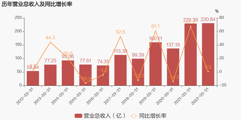 同日晚間金隅集團(tuán)披露一季度業(yè)業(yè)績報告稱,公司2022年一季度實現(xiàn)營業(yè)總收入230.8億,同比增長0.6%;實現(xiàn)歸母凈利潤2.8億,同比增長24.8%;每股收益為0.03元。