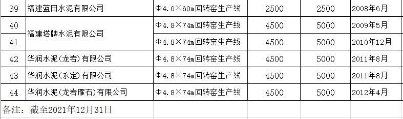 附件:1.2021年福建省水泥熟料生產(chǎn)線清單