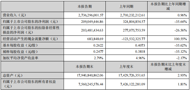 4月27日,江西萬(wàn)年青水泥發(fā)布2022年第一季度業(yè)績(jī)報(bào)告稱,公司第一季度實(shí)現(xiàn)營(yíng)業(yè)收入27.36億元,同比增長(zhǎng)0.96%;歸屬于上市公司股東的凈利潤(rùn)2.09億元,同比下降35.64%。