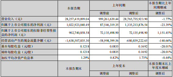 4月25日,新疆天山水泥股份有限公司發(fā)布2022年第一季度業(yè)績(jī)報(bào)告稱,公司第一季度實(shí)現(xiàn)營(yíng)業(yè)收入28,257,419,899.04 元,同比下降1.77%;歸屬于上市公司股東的凈利潤(rùn)1,022,923,040.49元,同比下降23.39%。