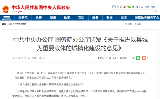 《關于推進以縣城為重要載體的城鎮化建設的意見》(以下簡稱“意見”中提到,縣城是我國城鎮體系的重要組成部分,是城鄉融合發展的關鍵支撐,對促進新型城鎮化建設、構建新型工農城鄉關系具有重要意義。