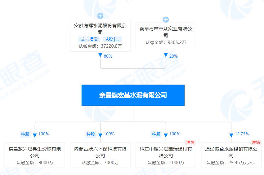 天眼查數據顯示,奈曼旗宏基水泥成立于2005年7月7日,法定代表人為程從新,注冊資本為4.65億元人民幣。該公司經營范圍包括水泥、水泥制品、石灰石微粉制造等。