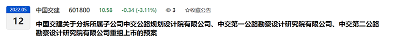 記者注意到,重組對手方之一的中國交建也于5月11日晚發布了分拆子公司重組上市預案。