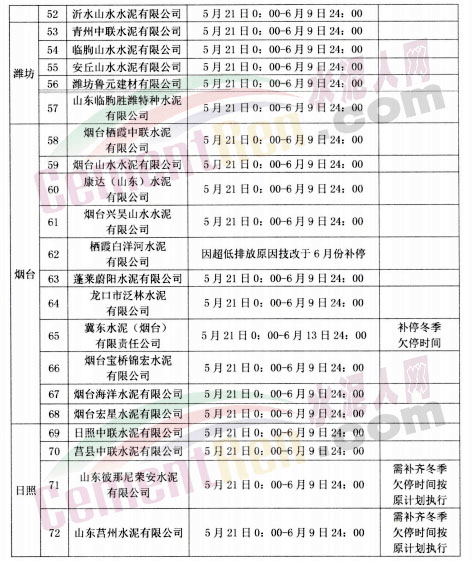 2 山東魯珠水泥有限公司補(bǔ)齊冬季欠停時間。