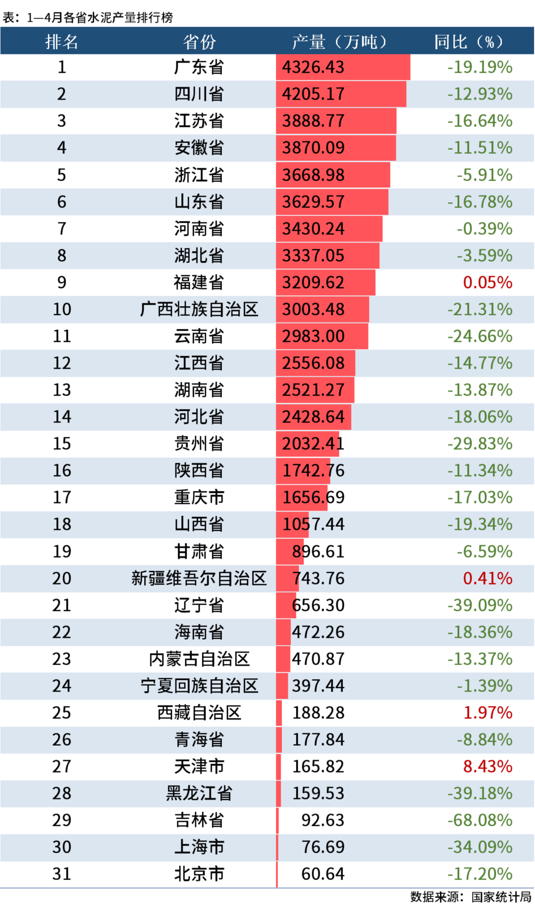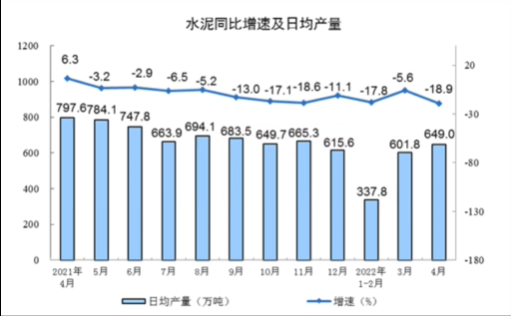 據國家統計局公布的數據顯示,中國4月水泥產量為19471萬噸,同比減少18.9%。1-4月累計水泥產量為58106萬噸,同比下降14.8%。