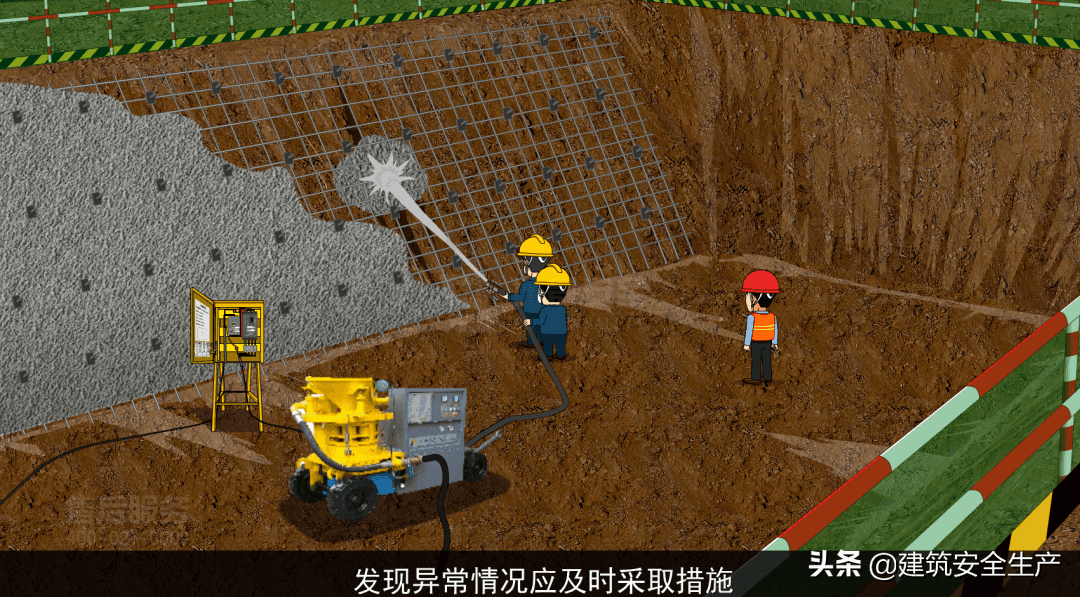 7.經(jīng)常查看邊坡和支護(hù)情況,發(fā)現(xiàn)異常應(yīng)及時采取措施,并通知地下作業(yè)人員撤離。作業(yè)人員發(fā)現(xiàn)邊坡大量掉土,支護(hù)設(shè)施有聲響時,應(yīng)立即撤離,防止土體崩塌造成傷亡事故。