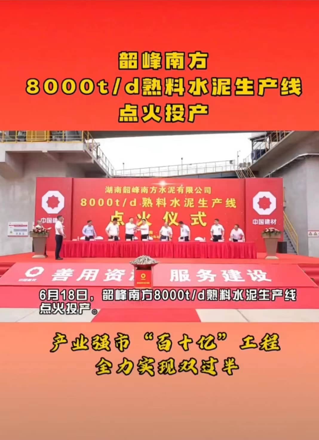 呂文斌在致辭中說,中南水泥是中國建材集團旗下的跨省級區(qū)域公司,韶峰南方是中南水泥的骨干企業(yè)。公司將精心組織,將項目打造成安全高效、綠色智能、低碳環(huán)保的精品工程,讓韶峰南方這個老建材工業(yè)基地?zé)òl(fā)新活力,為湘鄉(xiāng)市經(jīng)濟社會發(fā)展和生態(tài)文明建設(shè)作出新貢獻。