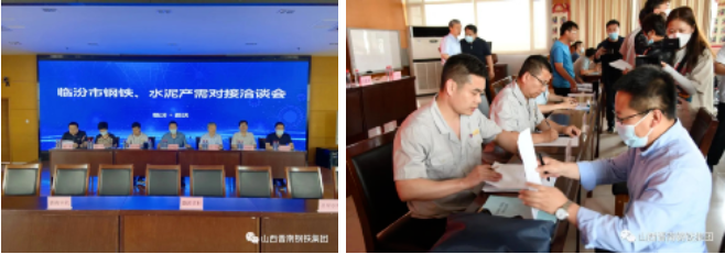 5月28日,山西臨汾市鋼鐵、水泥產需對接洽談會在晉南集團召開。9家鋼鐵、水泥生產供應企業(yè)、10家重點項目建設單位、8家交通運輸項目建設單位、32家市政及房地產項目建設單位參加洽談會。