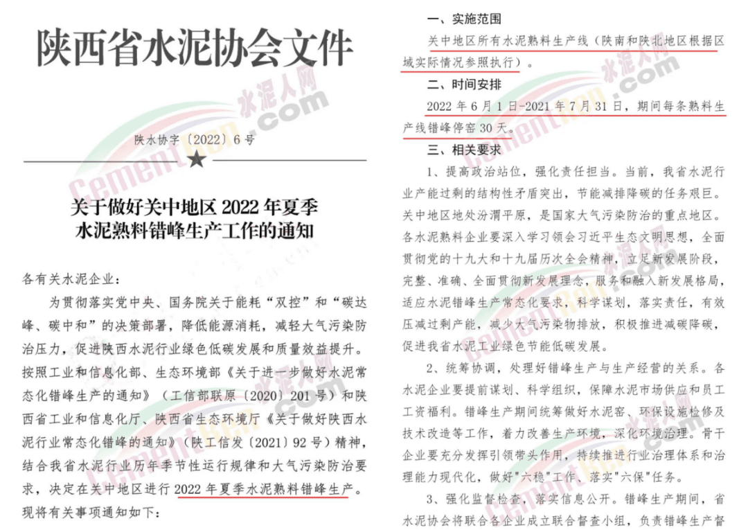 江西省水泥協會也在近日發布關于開展2022年6-7月梅雨季節錯峰生產及檢查工作有關要求的通知,全省所有熟料窯線錯峰生產15天,對單一工廠具有2條(含)以上窯線的,如確實所有窯線不能統一錯峰,在保持本工廠錯峰天數不變的情況下可通過其中的1條或2條窯線進行調節置換。計劃外停窯的不納入本次錯峰生產時間。
