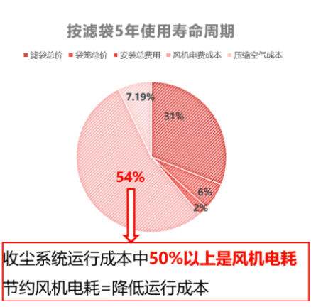 省下的就是賺到的,僅降低壓差一項(xiàng)就為企業(yè)節(jié)省了5000萬/年的費(fèi)用。再加上更換濾袋需要采購新濾袋的成本,袋籠成本,安裝費(fèi)用、更換濾袋所帶來的易損件費(fèi)用等。對于整條生產(chǎn)線而言這部分費(fèi)用并不很高 ,但是經(jīng)年累月,若經(jīng)常更換濾袋,所帶來的支出增加就可能導(dǎo)致企業(yè)成本上漲,在價(jià)格戰(zhàn)中丟失“市場份額”。