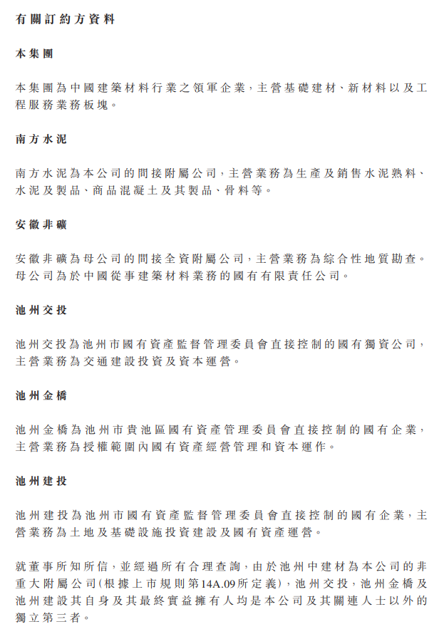 據(jù)悉,池州中建材為該公司的關(guān)聯(lián)附屬公司,主營(yíng)業(yè)務(wù)為生產(chǎn)及銷售新型建筑材料及制品、復(fù)合材料及制品、建筑石料、土砂石、骨料等。本次增資基于項(xiàng)目建設(shè)需要,旨在增強(qiáng)池州中建材的資金實(shí)力和運(yùn)營(yíng)能力,符合公司經(jīng)營(yíng)發(fā)展及全體股東的利益。