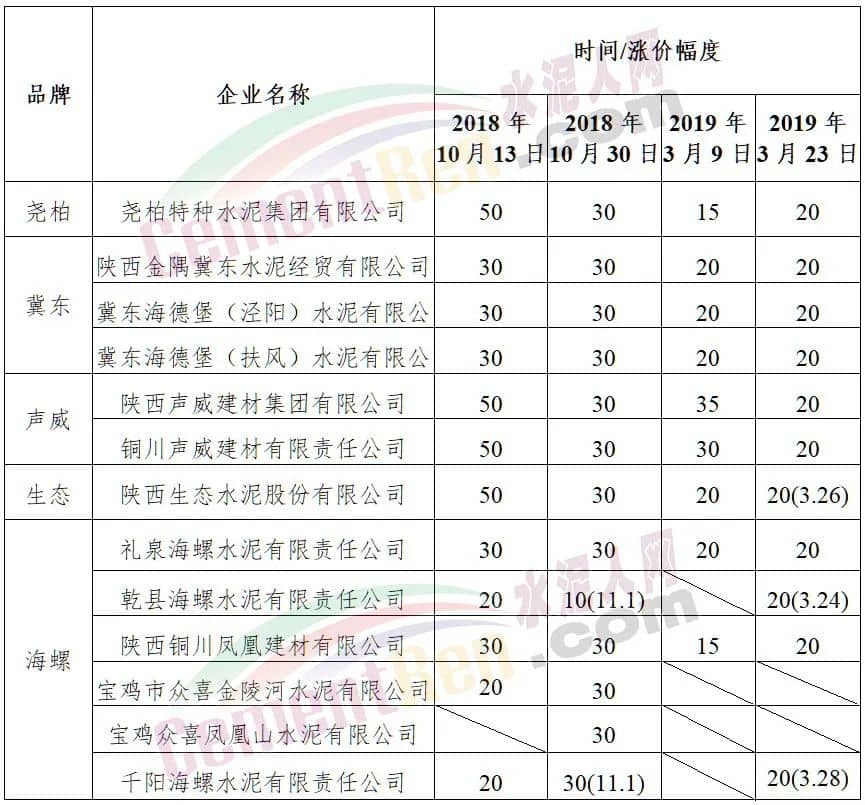 2019年3月22日,生態水泥有關負責人召集,陜西省水泥協會有關負責人、堯柏水泥有關負責人、冀東水泥有關負責人、聲威水泥有關負責人、海螺水泥有關負責人、生態水泥有關負責人在西安市鳳城八路附近茶秀商談價格上調事宜,并達成以下共識:從3月23日起各品種水泥上調20元/噸。