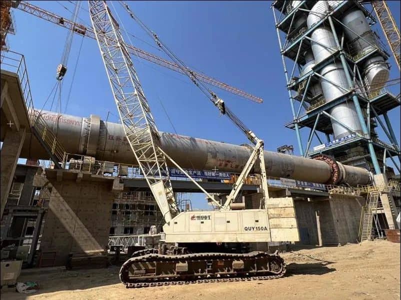 項目部為了確?;剞D窯吊裝作業安全順利進行,克服了人員、機械設備進場困難,認真編制、反復核驗施工方案,對參與吊裝的人員進行專項培訓,對吊裝步驟、安全注意事項進行了詳細交底。吊裝作業由專業起重師擔任吊裝總指揮,施工班組在作業過程中有條不紊、高效推進。最終項目部安全、優質地完成了回轉窯筒體吊裝合龍任務。