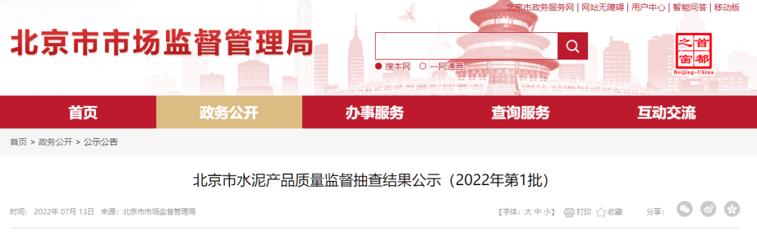 7月13日,北京市市場監(jiān)督管理局公布了《北京市水泥產(chǎn)品質(zhì)量監(jiān)督抽查結(jié)果公示(2022年第1批)》。