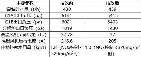 表1 5000噸生產(chǎn)線技改前后技術(shù)參數(shù)對比