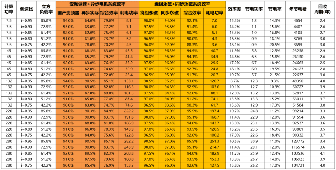 方案2:繞組永磁調速器取代閥門調節(jié)流量、壓力,節(jié)電率高達15-45%,投資回收周期1-3年。