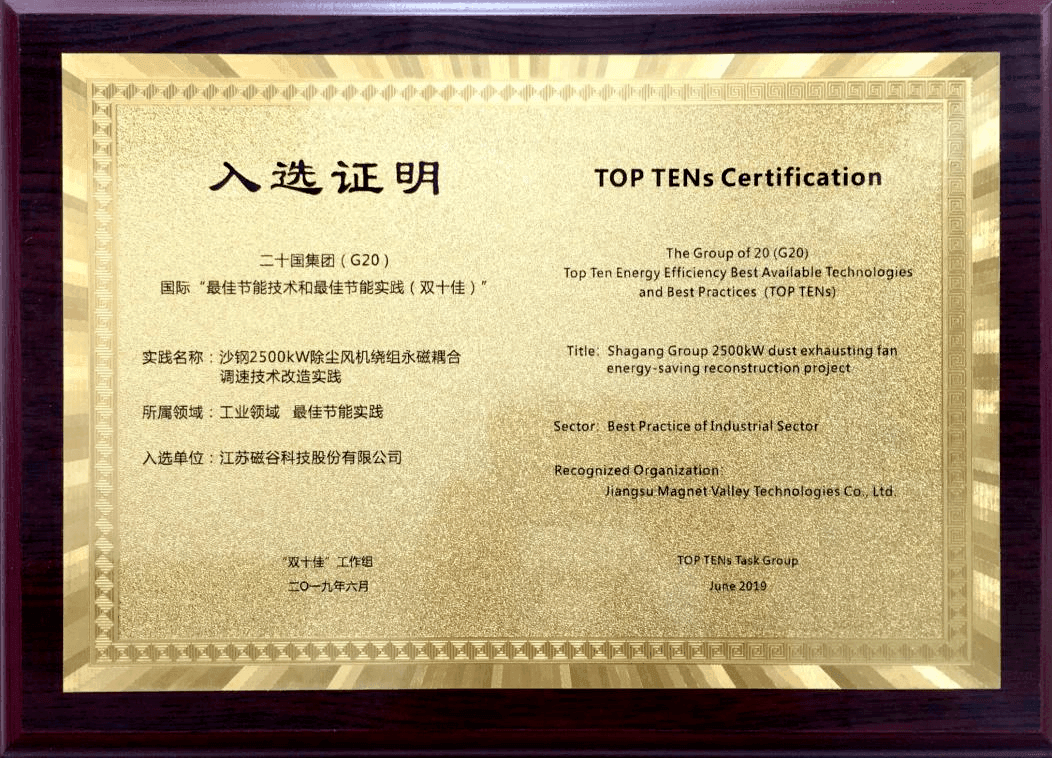 2、入選G20“國際雙十佳”(節(jié)能領域最高榮譽),第一屆2014年,第二屆2019年,入選中國企業(yè)僅三家;