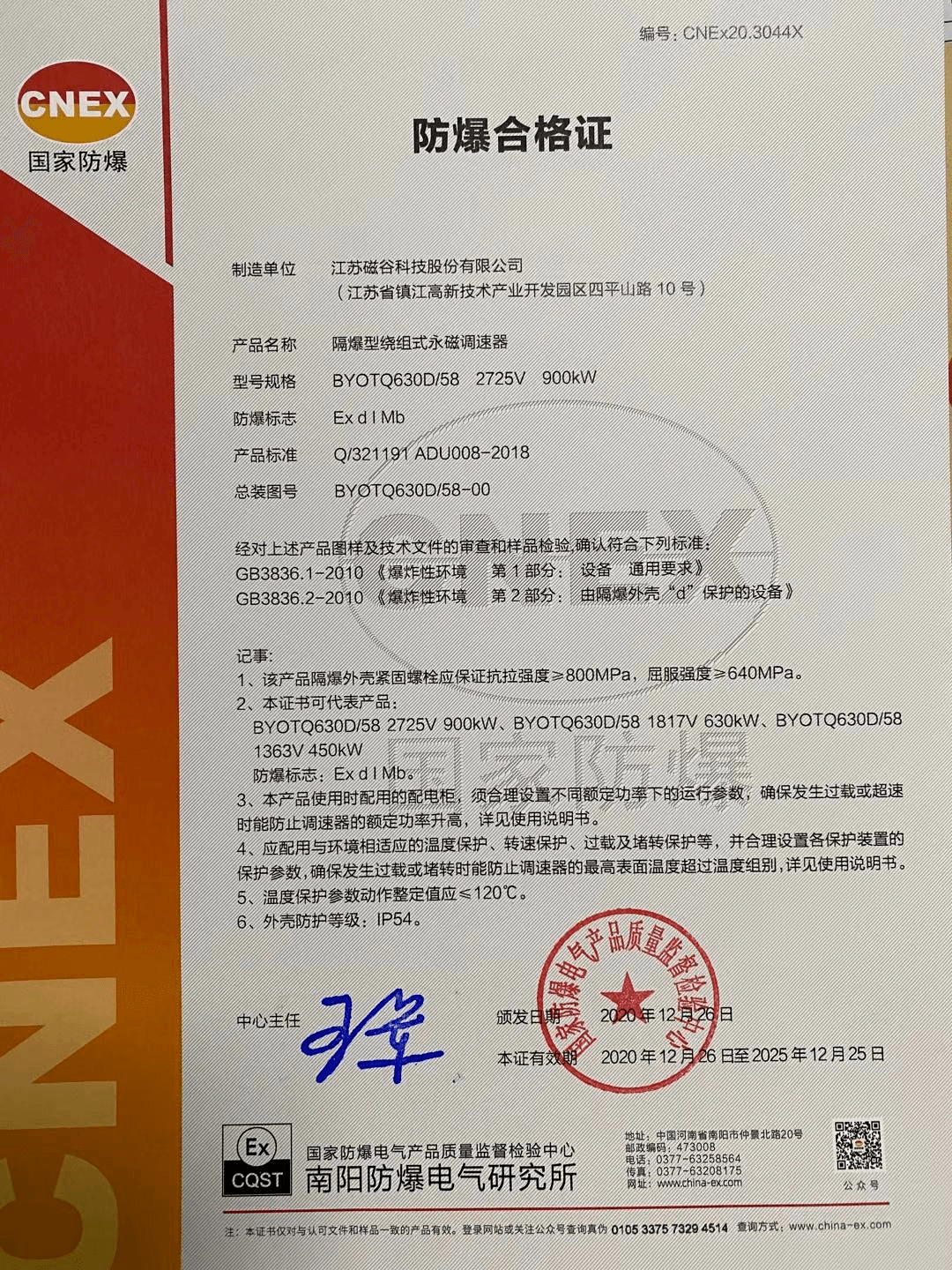 7、獲得國家防爆電氣產(chǎn)品質量監(jiān)督檢驗中心頒發(fā)的防爆合格證。
