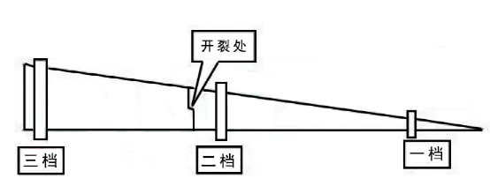 涉案回轉(zhuǎn)窯中線檢測未發(fā)現(xiàn)有大的異常,排除由于中心線不直導(dǎo)致筒體長期三檔受力不均勻出現(xiàn)開裂;