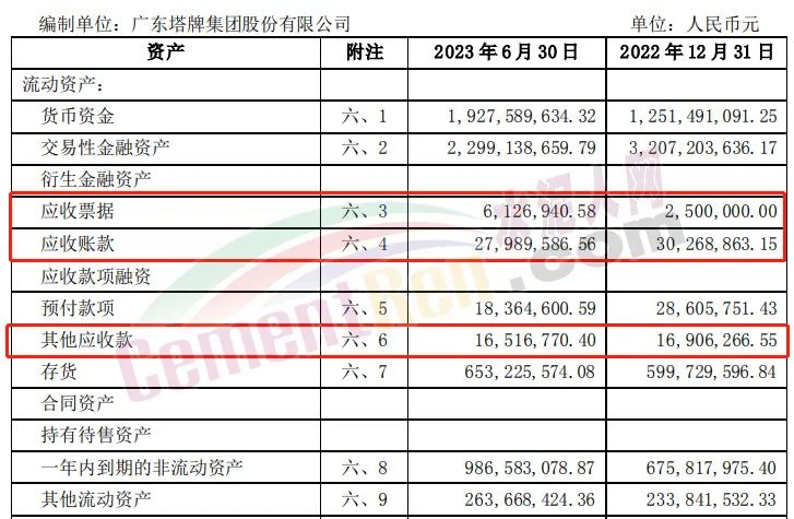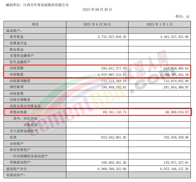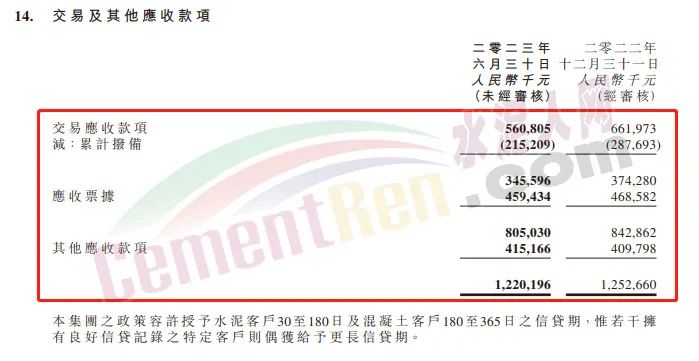 2023年上半年亞洲水泥應收賬款5.6億,應收票據(jù)8.05億,其他應收款12.2億。