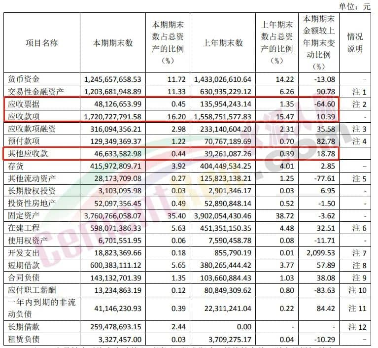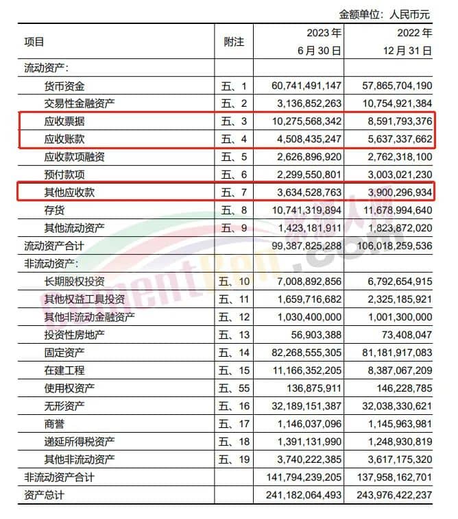 2023年上半年天瑞水泥應收賬款2.42億,應收票據(jù)96.1億,其他應收款3.22億。