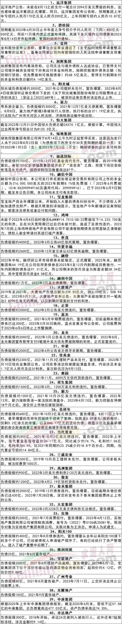 據(jù)水泥人網不完全統(tǒng)計,目前已有40多家龍頭房企已經宣布違約爆雷,甚至停牌退市,遠洋集團未支付美元票據(jù)利息、碧桂園11只境內債正式停牌、陽光城理財未兌付、綠地集團未支付債券應付利息、世茂集團60億信托展期、正榮美元債違約、藍光票據(jù)違約、花樣年美元債違約……他們欠下的賬款和未付的商票又該如何處置呢?