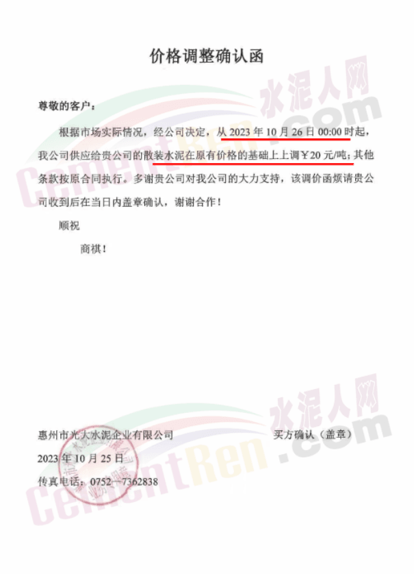 宜春紅獅通知,自10月26日起,對(duì)發(fā)往湖南長(zhǎng)株潭地區(qū)的各規(guī)格品種水泥報(bào)價(jià)上調(diào)20元/噸。