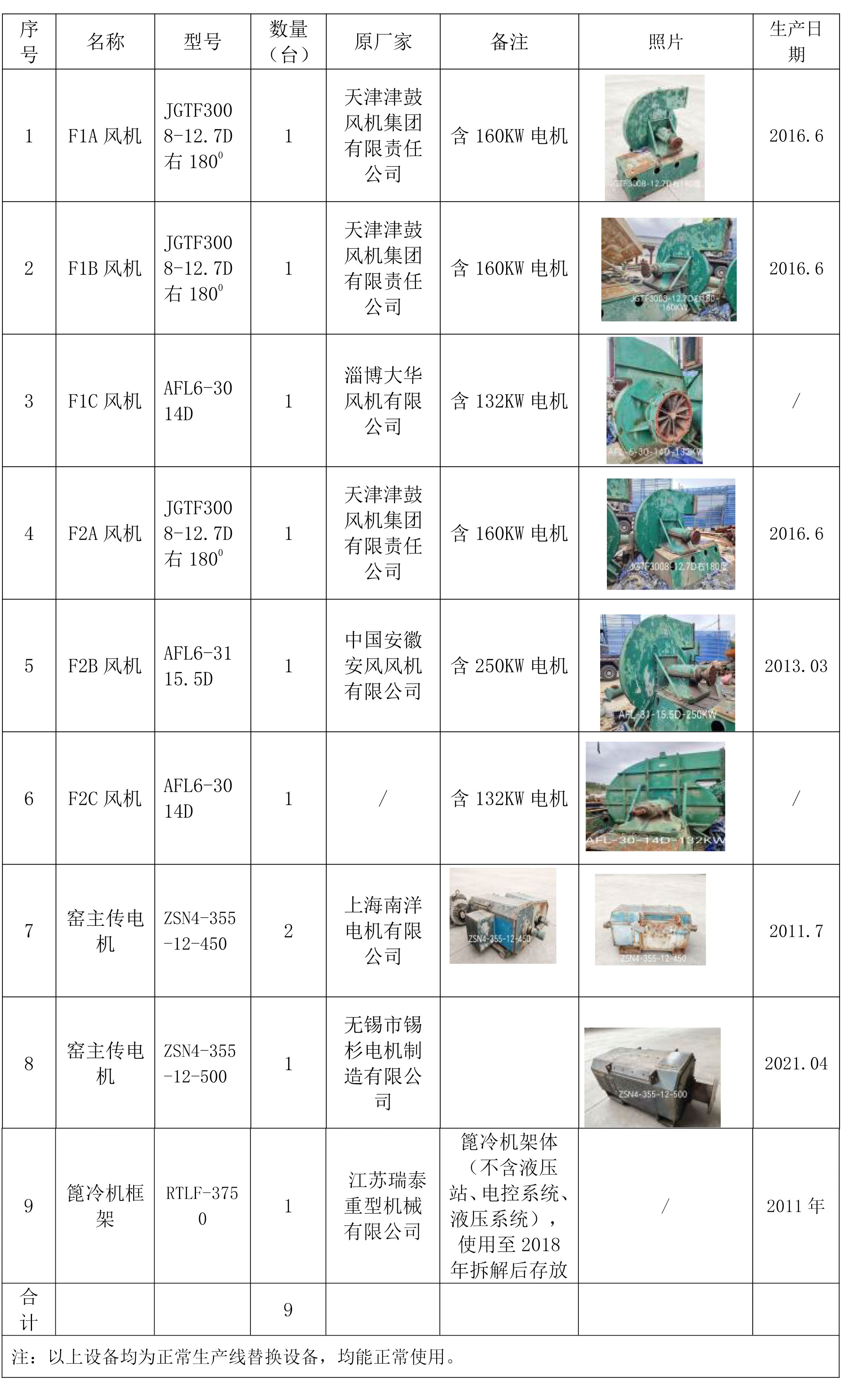 山東泰西水泥有限公司現(xiàn)有閑置窯主傳電機(jī)、篦冷機(jī)風(fēng)機(jī)及篦冷機(jī)框架擬進(jìn)行公開外賣處理現(xiàn)將相關(guān)事宜告知如下: