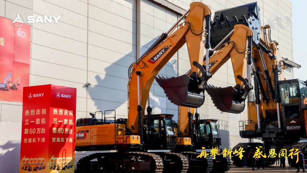 三一重機從2002年首臺挖掘機問世,歷經23載砥礪,達成全機型挖掘機60萬臺銷量新高。(截至2024年底)